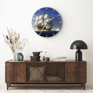 Nástěnné hodiny - Plachetnice s roztaženými plachtami pluje po moři proti větru. - 30x30cm - The great glory! - Moderní nástěnná dekorace do obývacího pokoje, kuchyně a ložnice ARTTOR