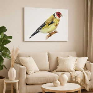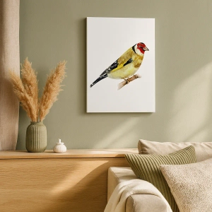 Plátno "Portrét ptáka" zobrazuje okouzlujícího ptáka s červenou hlavou sedícího na jemné větvi. Jeho přírodní barvy - žlutá, červená a černá - kontrastují se světlým, minimalistickým pozadím a zdůrazňují krásu motivu. Obraz, vyrobený ve stylu akvarelu, kombinuje jemnost s uměleckým výrazem, který upoutá pozornost.