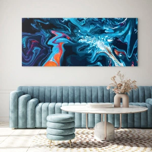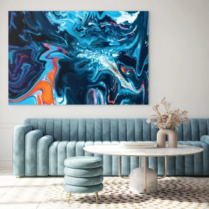 Investujte do tisku, který se stane ústředním bodem vašeho interiéru. Abstraktní vzor v odstínech modré je kombinací energie, elegance a modernity, která potěší každého milovníka krásných dekorací.