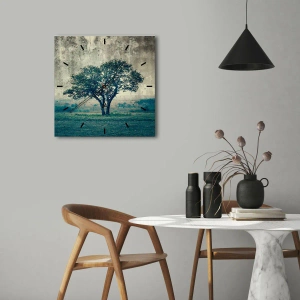 Nástěnné hodiny - Jabloň na modrém poli? - 40x40 cm