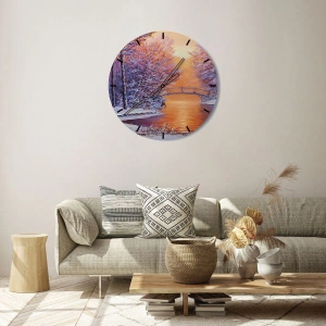 Obraz zobrazuje zimní krajinu s mostem, stromy a sněhem, čímž vytváří atmosféru klidu. Hodiny „Sejdeme se zde“ jsou vynikající volbou pro interiéry, které si cení elegantní zimní atmosféry a přírody. Perfektně se hodí do moderních i klasických prostor.