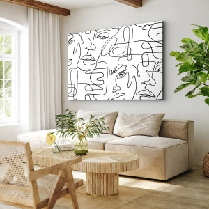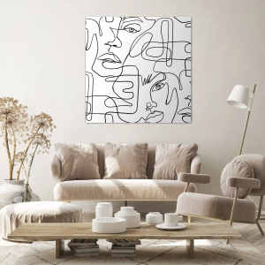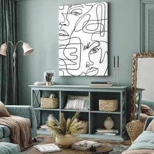 Motiv obrazu kombinuje jednoduchost a eleganci, což z něj činí vynikající volbu pro moderní aranžmá. Linie tvořící obličeje dodávají dílu hloubku a dynamiku a zároveň si zachovávají jeho minimalistické kouzlo. Celkový design, inspirovaný moderním uměním, zdůrazňuje krásu formy a prostoru.