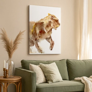 Obraz na plátně - Běžící lvice v umělecké interpretaci - 70x50cm - Divoká elegance - Moderní nástěnná dekorace do obývacího pokoje a ložnice ARTTOR