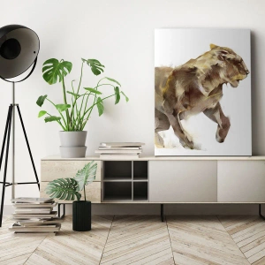 Divoká grácia je unikátní obraz na plátně zobrazující běžící lvici v umělecké interpretaci. Kompozice kombinuje dynamiku pohybu zvířete s jemnou paletou béžových odstínů, což jí dodává jedinečný charakter. Použité malířské techniky zdůrazňují eleganci a sílu lvice a vytvářejí moderní a minimalistickou formu.