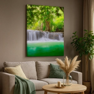 Obraz na plátně - Vodopád v zeleni - 100x40 cm