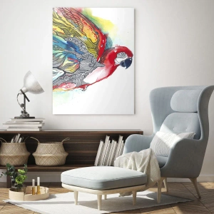 Tvůrci díla se inspirovali tropickou krásou a rozmanitostí přírody, která se dokonale odráží v barevném papouškovi zobrazeném v dynamické póze. Křídla plná abstraktních detailů dodávají obrazu umělecký charakter, který potěší jak milovníky současného umění, tak i dekorací inspirovaných přírodou.