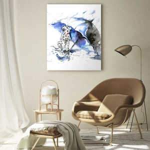 • Tento umělecký akvarel zobrazuje dalmatina sedícího u deštníku v deštivém prostředí. Dokonalá dekorace, která vnese harmonii a jedinečný styl do každého interiéru.