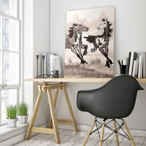 - Tento skleněný obraz zobrazuje cválající koně v minimalistickém čínském stylu. Perfektní volba pro milovníky přírody, harmonie a orientálního umění.