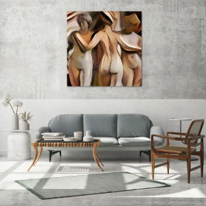 Obraz na skle - Abstraktní kompozice se třemi postavami - 70x50cm - Tři Grácie 2.0 - Moderní nástěnná dekorace do obývacího pokoje a ložnice ARTTOR