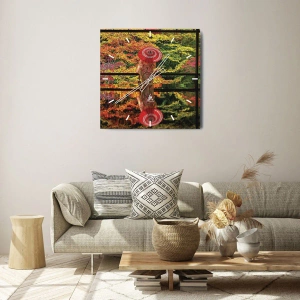 „V chrámu přírody“ jsou unikátní nástěnné hodiny, které nás přenesou do atmosféry Japonska. Ciferník zobrazuje postavu držící červený deštník, která se prochází mezi podzimním listím. Odraz ve vodě vytváří zrcadlový efekt, který dodává celé kompozici harmonii.