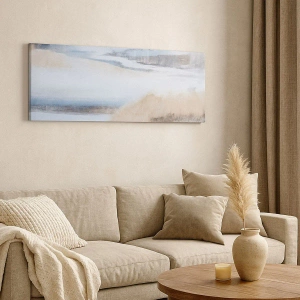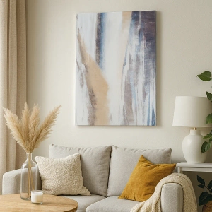 - Tento obraz zobrazuje abstraktní zimní krajinu v odstínech bílé a modré. Ideální pro interiéry, které touží po harmonii a jemnosti.