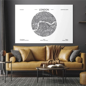 Obraz Anatomie Londýna je detailní mapa britského hlavního města, prezentovaná v elegantním černobílém grafickém stylu. Kompozice kombinuje estetiku, preciznost a styl minimalismu a vytváří sofistikovaný dekorativní akcent.