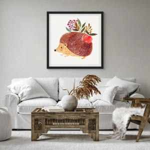 Plakát v černém rámu - Roztomilý ježek s jablkem a větvičkami na světlém pozadí - 50x70cm - A už mě máš rád - Moderní nástěnná dekorace do obývacího pokoje a ložnice ARTTOR