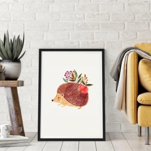 - Tento plakát zobrazuje okouzlujícího ježka nesoucího na zádech jablko a větvičky, vykresleného jemnou akvarelovou technikou. Teplé barvy a decentní styl ilustrace mu dodávají jedinečný pohádkový nádech.