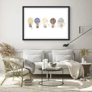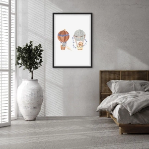 Plakát v černém rámu - Roztomilá zvířata v balóncích na bílém pozadí ve stylu akvarelu - 50x70cm - Přátelé na cestách - Moderní nástěnná dekorace do obývacího pokoje a ložnice ARTTOR
