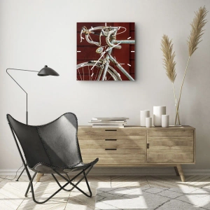 Hodiny jsou vyrobeny z bezpečného tvrzeného skla o tloušťce 4mm. Technologie výroby hodin je v souladu s třídou bezpečnosti 2B2 podle normy PN-EN 12600:2004, která garantuje odolnost proti nárazům. Hodiny na skle jsou připravené k zavěšení – mají kovový závěs upevněný na zadní částí hodin a pěnovou distanční podložku, která upravuje vzdálenost hodin od zdi. Hodiny mají tichý plovoucí mechanismus napájený 1,5V baterií - AA baterie (baterie není součástí balení).