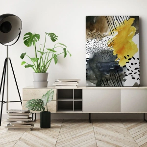 Obraz na plátně - Abstraktní kompozice se žlutými akcenty a grafickými vzory. - 70x50cm - Setkání živlů - Moderní nástěnná dekorace do obývacího pokoje a ložnice ARTTOR