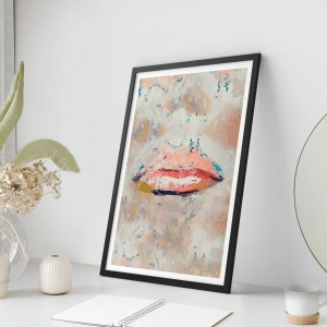 - Plakát zobrazuje abstraktní rty v pastelové paletě s akcenty béžové, růžové a jemných tónů. Kompozice v impresionistickém stylu dodává interiéru umělecký výraz a eleganci.