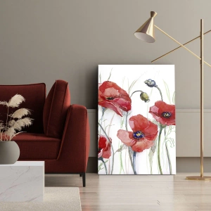 - Tento plátěný obraz o rozměrech 70x50 cm zobrazuje akvarelové vlčí máky na jemném pozadí. Ideální do interiérů, které vyžadují decentní a elegantní dekoraci.