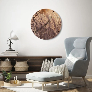 Nástěnné hodiny - Připraveni přivítat podzim - Zlaté trávy v podzimním světle zapadajícího slunce