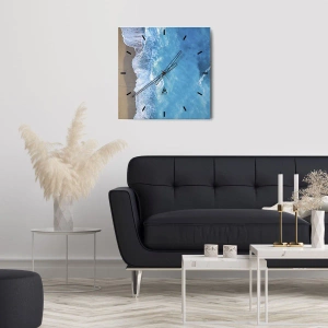Nástěnné hodiny - Pohled z ptačí perspektivy na oceánské vlny narážející na písečnou pláž - 30x30cm - Síla modři - Moderní nástěnná dekorace do obývacího pokoje, kuchyně a ložnice ARTTOR
