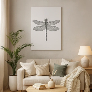 „Precision of Nature“ je decentní umělecké dílo, které zobrazuje černobílou kresbu vážky na bílém pozadí, zdobené v minimalistickém stylu. Tato elegantní kompozice harmonicky kombinuje přírodní krásu s moderním designem, ideální pro vytvoření prostoru plného klidu a estetiky. Detailní zobrazení křídel a těla vážky potěší svou precizností a jemnými detaily.