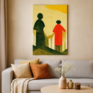„Ještě je před námi dlouhá cesta“ je obraz na plátně, který vyniká svým moderním a uměleckým přístupem k formě. Geometrické siluety v červené a zelené barvě jsou zasazeny do pozadí v teplém odstínu žluté a vytvářejí tak kontrastní, ale harmonickou kompozici. Toto dílo je ideální pro ty, kteří oceňují jedinečné nástěnné dekorace a moderní umění.