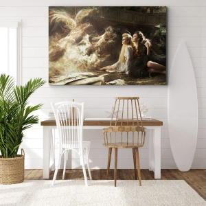 - Obraz zobrazuje dvě ženy obklopené éterickými světelnými efekty v magickém prostředí. Tato atmosférická kompozice je ideální pro interiéry inspirované uměním, fantazií a romantismem.