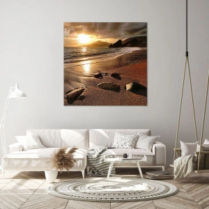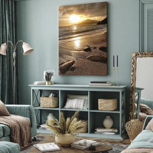 Obraz "Západ slunce nad tichou pláží" je perfektní dekorací pro milovníky přírody a krásných krajin. Bude vypadat perfektně v obývacím pokoji, ložnici nebo jídelně a vnese do interiéru teplo a harmonii.