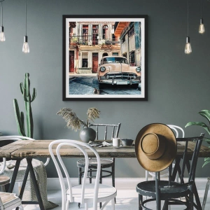 Plakát "Sjesta in Havana" je unikátní nástěnná dekorace, která zobrazuje klasický vůz v retro městském prostředí. Kombinace krásy klasického motorismu s architektonickými detaily dodává celému obrazu jedinečný charakter.