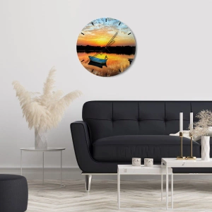 Nástěnné hodiny - Dívejte se, poslouchejte, meditujte - Loď na klidné vodě při západu slunce