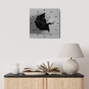 „Okřídlené hudbou“ jsou mimořádné nástěnné hodiny, které potěší svým jedinečným ztvárněním pohybu. V centrální části kompozice je dynamická silueta tanečnice oblečené ve velkolepých černých šatech, jejichž látka víří ve vzduchu a vytváří mimořádnou podívanou na výraz. Celé dílo je laděno v elegantní paletě šedé a černé, což zdůrazňuje umělecký charakter obrazu. Motiv Tance, plný energie a lehkosti, dokonale vystihuje myšlenku pohybu a vášně a slouží jako inspirativní nástěnná dekorace.