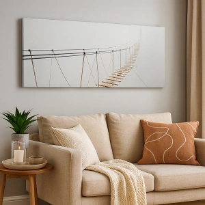 - Obraz zobrazuje visutý most mizející v mlze a vyjadřuje tak pocit tajemna a minimalismu. Je ideální pro moderní interiéry, přináší harmonii a inspiraci.