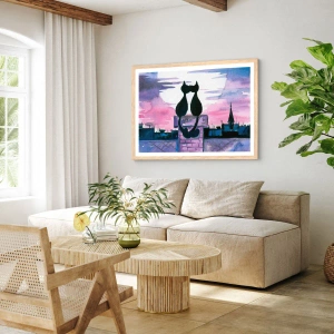 Plakát v rámu světlý dub - Rendez-vous pod měsíčkem - 50x50 cm