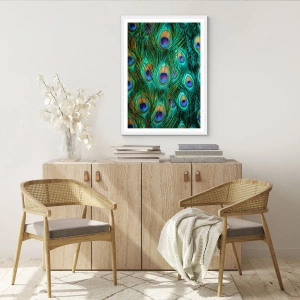 Plakát v bílém rámu - Paví pohled - 91x61 cm