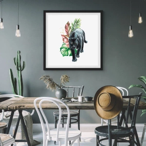 - Tento plakát s černým panterem na pozadí tropické vegetace zachycuje divokou a exotickou atmosféru. Tato umělecká kompozice dokonale doplňuje moderní interiéry.