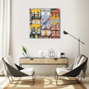 Nástěnné hodiny - Barevné fasády činžovních domů s balkony a okny - 30x30cm - Barvy starého města - Moderní nástěnná dekorace do obývacího pokoje, kuchyně a ložnice ARTTOR
