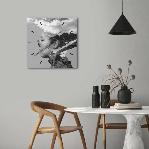 Nástěnné hodiny - Povznešen portrét v oblacích - 30x30 cm