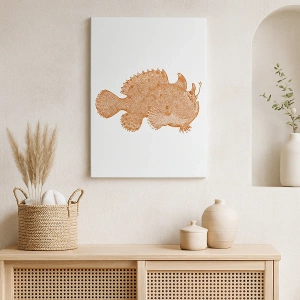 - Tento plátěný obraz o rozměrech 70x50 cm zobrazuje detailní měděně zbarvenou rybu na bílém pozadí. Je ideální do moderních interiérů a dodává jim jemnost a eleganci.