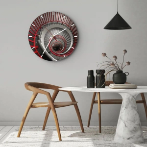 - Tyto kulaté nástěnné hodiny o rozměrech 30x30 cm vypadají při pohledu shora jako točité schodiště. Červená madla kontrastují s šedým prostorem a vytvářejí moderní a dynamickou kompozici. Tento produkt je od značky ARTTOR.