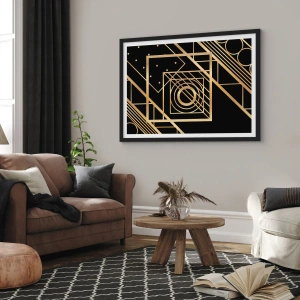 Plakát v černém rámu - Zlatá geometrie - 61x91 cm