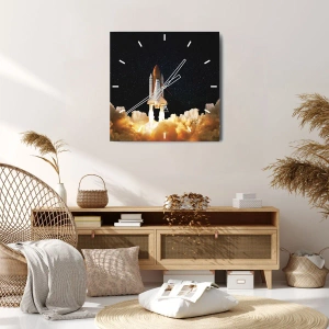 Nástěnné hodiny - Start vesmírné rakety na pozadí hvězdné oblohy - 30x30cm - Ad astra! - Moderní nástěnná dekorace do obývacího pokoje, kuchyně a ložnice ARTTOR