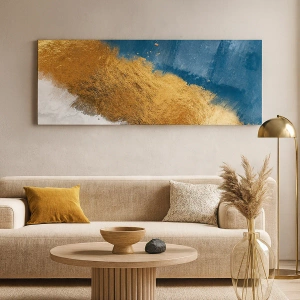 „Barvy léta“ je návrh pro lidi, kteří si v umění cení harmonie a inspirativních motivů. Zlaté a modré tóny vnášejí prvky dynamiky a relaxace a zároveň dodávají prostoru jedinečný charakter. Obraz se dokonale hodí do různých stylů interiéru, od klasického až po industriální.