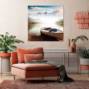 Motiv jezera a lodi symbolizuje klid a blízkost přírody. Obraz „U velké a čisté vody“ je perfektní volbou pro ty, kteří hledají relaxační dekoraci. Jeho jemné barvy se dokonale hodí do světlých a prostorných interiérů a vytvářejí atmosféru tepla a útulnosti.