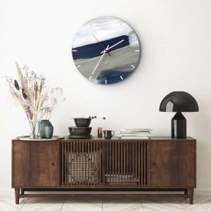 - Tyto nástěnné hodiny o rozměrech 30x30 cm se vyznačují abstraktní kompozicí v odstínech bílé a tmavě modré. Minimalistické tahy štětcem vytvářejí kontrastní a moderní motiv.