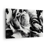 Obraz na plátně - Černé a bílé růže v elegantní kompozici - 70x50cm - Vždy královnou - Moderní nástěnná dekorace do obývacího pokoje a ložnice ARTTOR