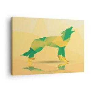 Obraz na plátně - Geometrická silueta vlka v zelených a žlutých odstínech - 70x50cm - Samotný vlk - Moderní nástěnná dekorace do obývacího pokoje a ložnice ARTTOR