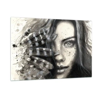 Obraz na skle - Zamyšlená, smutná, spokojená - 120x80 cm