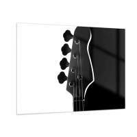 Obraz na skle - Černobílý hřbet baskytary se stínem - 70x50cm - Rockové ticho - Moderní nástěnná dekorace do obývacího pokoje a ložnice ARTTOR