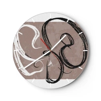 Nástěnné hodiny - Klikaté pruhy v zemitých tónech na bílém pozadí - 30x30cm - Meandry zemitých barev - Moderní nástěnná dekorace do obývacího pokoje, kuchyně a ložnice ARTTOR